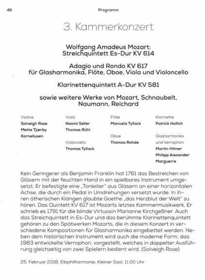 für Glasharmonika, Flöte, Oboe, Viola und Violoncello Pause